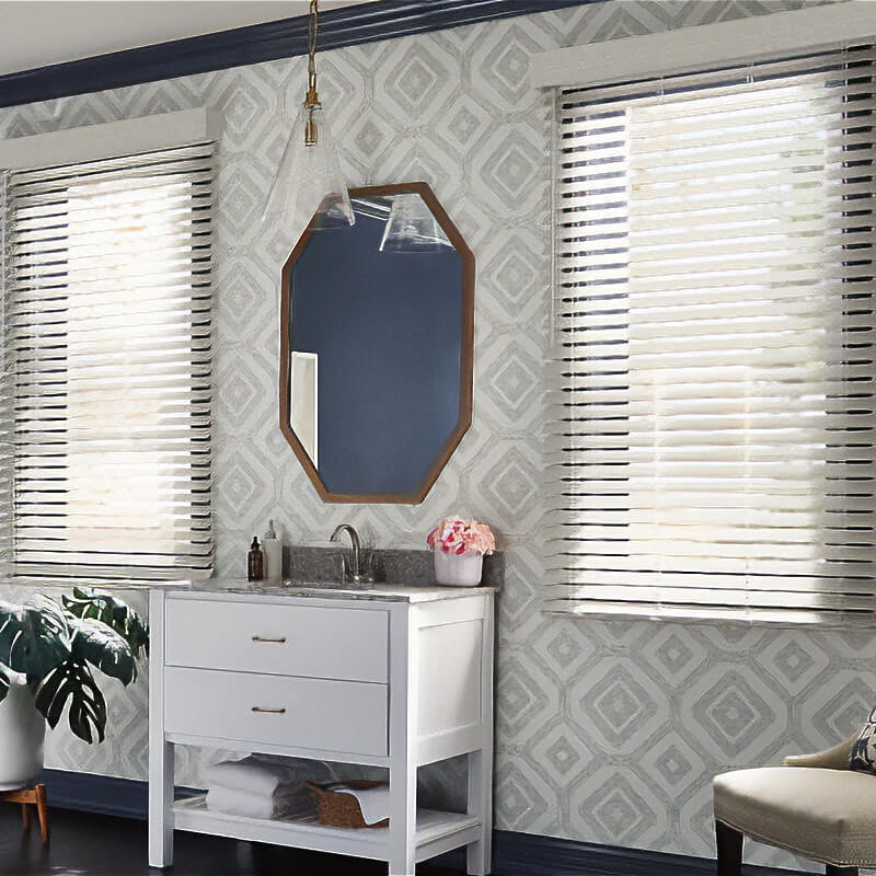 These blinds, sturdier and lighter than faux wood options, withstand high humidity and pair seamlessly with Graber composite shutters, ensuring a unified look throughout your home.