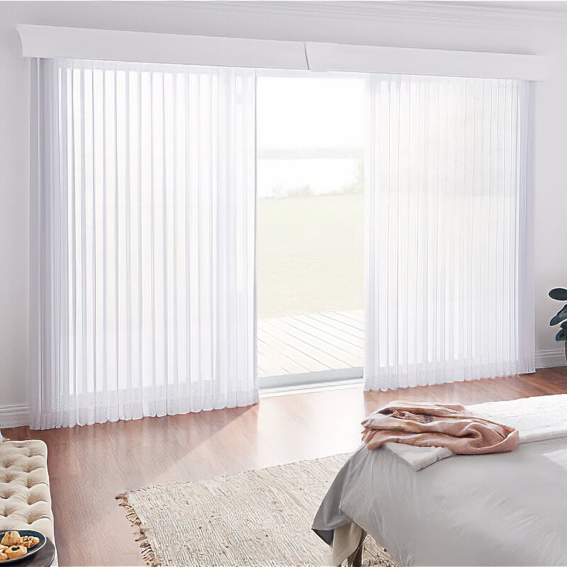Our vertical blinds are both durable and simple to use, offering an economical solution for light control in large windows and doors. Available in fabric choices ranging from sheer to room darkening, they provide the elegance of drapery with the functionality and privacy of blinds.