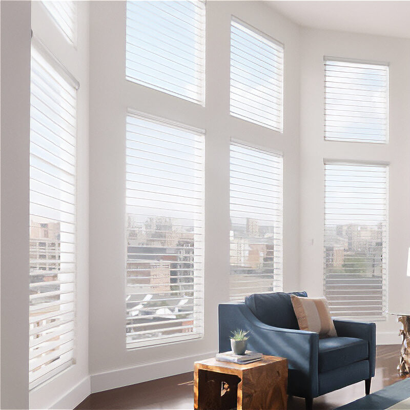 Known as “soft blinds,” these shades are a harmonious blend of traditional blinds and contemporary shades. When open, they offer an unobstructed view like blinds, and when closed, they resemble stylish shades, providing an effective light-filtering solution.
