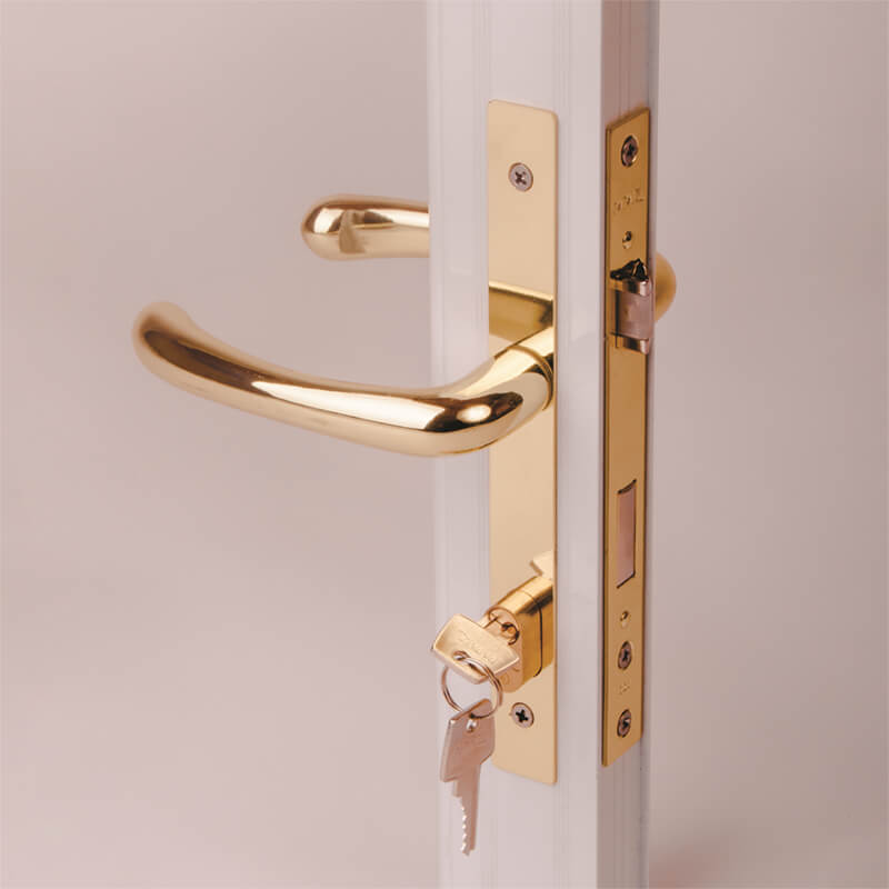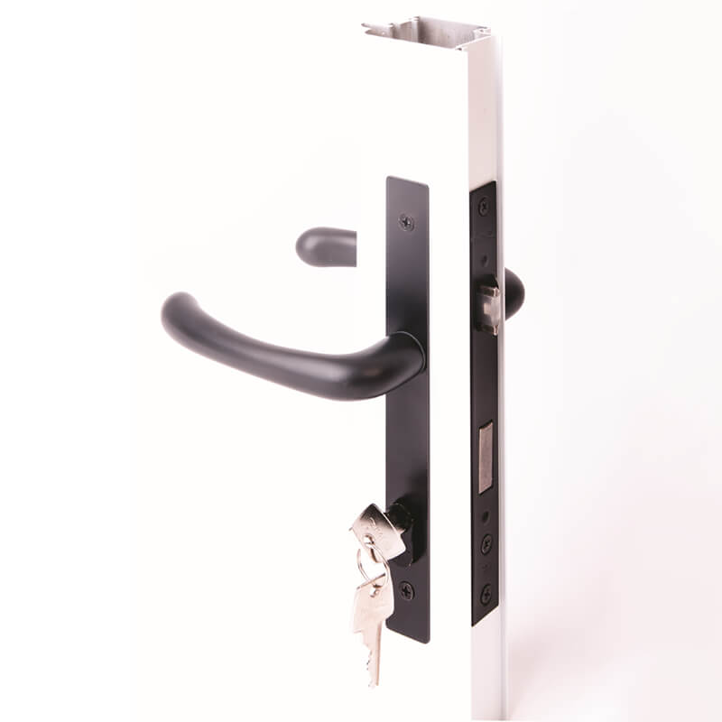 Standard features of the GenTek storm doors include a 2″ overlap frame (Bradford) or a 2 1/4″ overlap frame (Monarch), 1/2″ increments width + height, 3 mm tempered glass, superior weatherstripping system, reinforced corners, durable aluminum screen, four heavy-duty hinges, colour-matched closer, and insulated kickplate (standard on Monarch doors only).