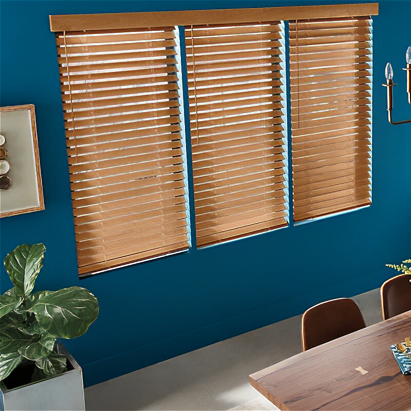 Our faux wood blinds, made from fire-resistant and moisture-resistant PVC, come in solid colors or patterns that mimic real wood grain. They combine the charm of natural wood with the benefits of modern engineering.