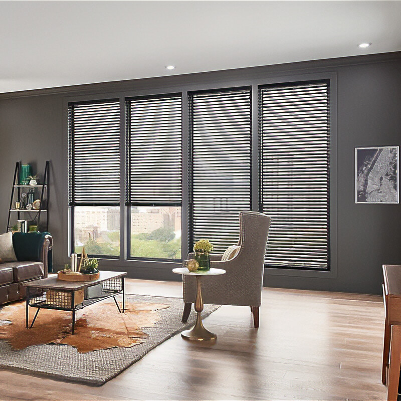Our aluminum window coverings blend practicality with a contemporary look. Available in warm tones and textures that align with current trends, they are resistant to dust, stains, and scratches, and are known for their excellent light control and reliability.